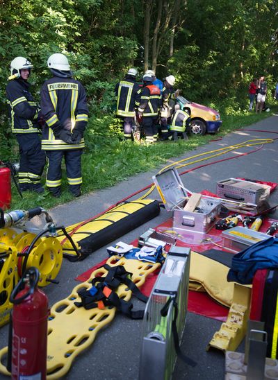 Während die Truppfrauen und -männer ein angenommenes Feuer an einem Wohnhaus bekämpften, zeigte der Truppführungslehrgang die Befreiung einer unter einer schweren Last eingeklemmten Person und die Rettung einer verunfallten Personen aus einem PKW.